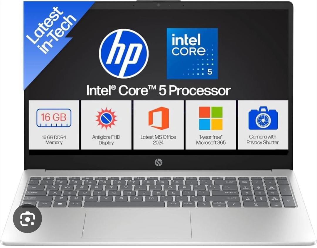 HP 15, Intel Core 5-120U (16GB DDR4, 512GB SSD) FHD, Anti-Glare, Micro-Edge, 15.6”/39.6cm, Win11, M365 Basic(1yr), Office Home24, Silver,1.59kg, FD0640TU, FHD Camera w/privacy shutter, Backlit Laptopx